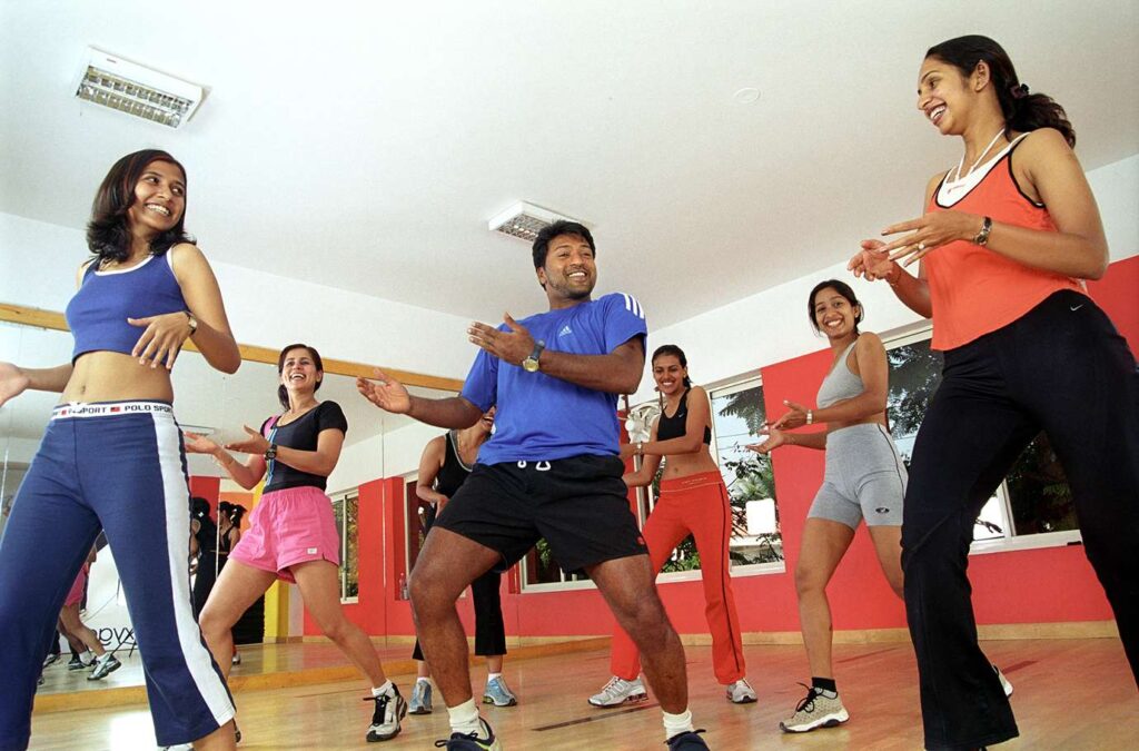 Dance Aerobics combines multiple dance styles and workout techniques, creating energetic sessions that improve stamina, flexibility, coordination, strength, and overall fitness through daily trainer-led variety.